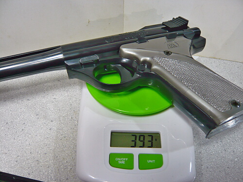 重量はウェイトが省かれた軽量仕様なので軽めで393g。大きい銃ですが取り回しの良い重さではあります。