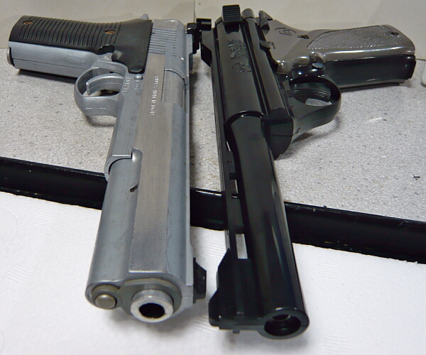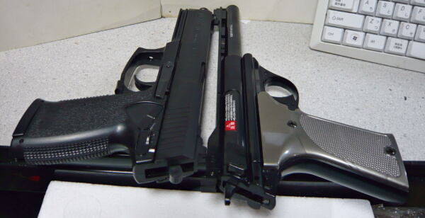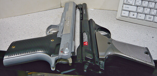 同マルイのオートマグⅢと。44オートマグ。やはり大きさは近いですがバレル周りの印象は大きく異なります。