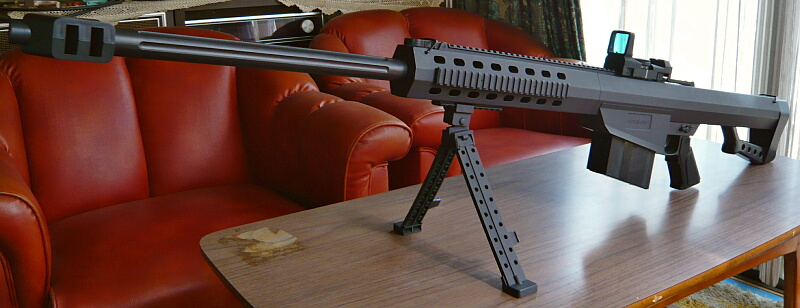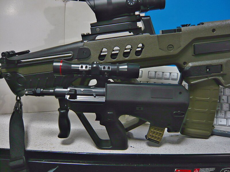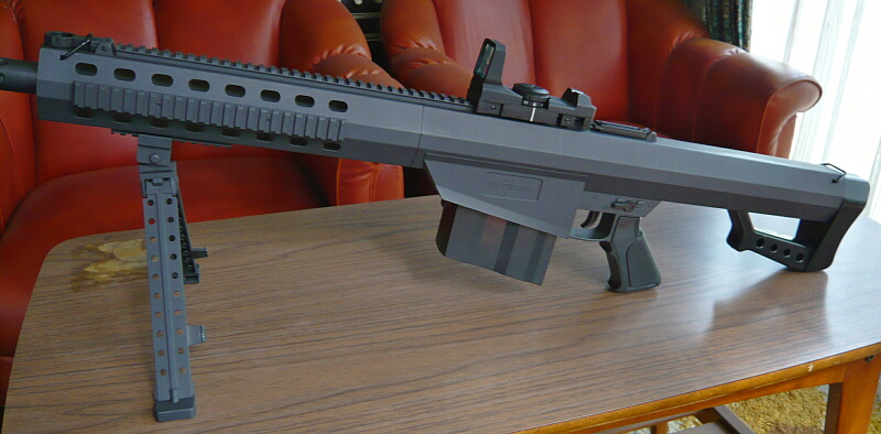 バイポッドもパーカーシールで塗装して、ドットサイトも載せて出来上がり。アウターバレルとマズルブレーキはキャロムのブラックスチール+インディのクリアパーカーでレシーバー部との色調を変えていますが、パーカーシール一色でも良かったかも。
