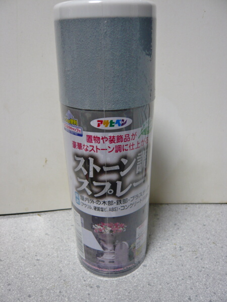 なんて思いつつ適当にググっていたらこんなものがいつのまにか発売されていました。アサヒペンのストーン調スプレーです。本来の目的は例えばプラ製の植木鉢の外側を石やレンガのような見た目にするべく表面をゴツゴツしたコンクリートのような表面にしてしまうというもの。ホームセンターには売ってなかったので通販使って買ってみました。色はグレーグラナイト、1本1300円くらい。