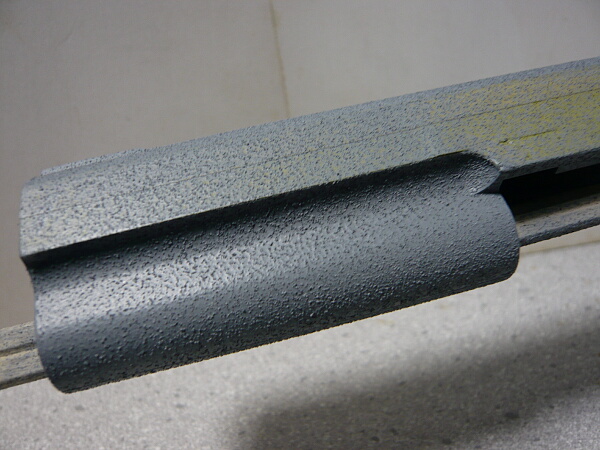 本体モナカは厚めに吹いたのでこってりしてて刻印も消えそうな勢い。前回のストーン調スプレーと似たところがありますが、あちらよりも目の細かいシボが形成されています。吹きっぱなしではこのようにマットな風合いですが広い面を均一に吹くのは難しい塗料です。