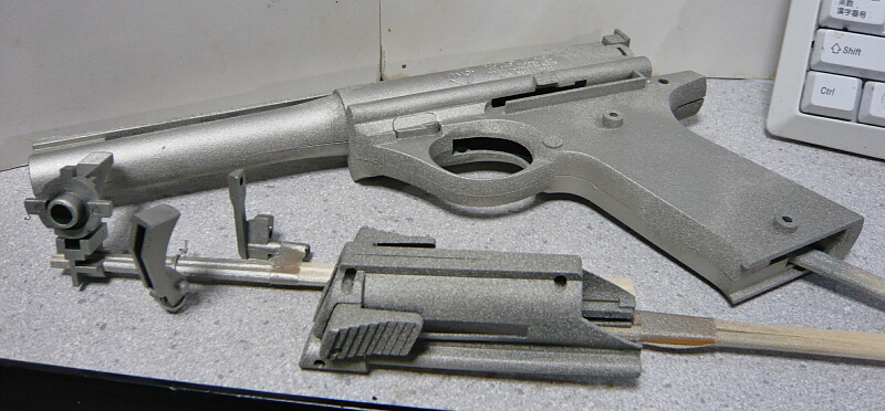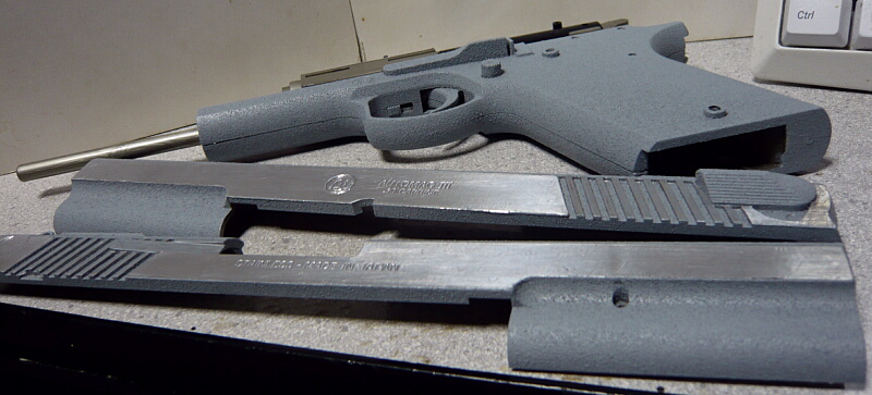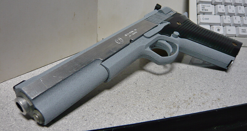 オートマグⅢのスライド側面以外の部分やフレームなどのグレーのシボの部分の表現をドーシヨッカナーと思いつつもう20年近く経ってしまいました。こういう憧れ的なものはあると思います。しかし、どうにか実現できないものだろうか・・・