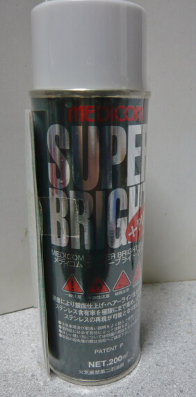90年代中頃の弾けたバブルも少し落ち着いた頃、ちょっとスゴイ塗料が発売されました。メディコムのスーパーブライトというステンレスの粒子を吹き付ける事によりリアルなステンレス調の表面仕上げに出来る上、研磨する事でメッキのような鏡面にできるというものでした。当時アームズマガジンの記事を見ながらスゲーマジ欲しいと思っていたのですが地元ではあまり出回らず、また値段も3千円以上と結構高かったのでその後興味が引けた頃にチラッと店頭で見た気はするのですが結局買わずじまいに終わり、年月が経ってみるといつの間にか市場から消えていました。