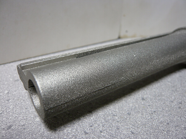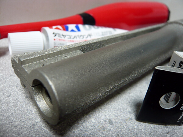 400番のポリッシャーで軽く撫でてからコンパウンドで磨いてみます。何かこう、シボの表面が磨かれた感じはまるで鋳造部品のよう。水道管というかなんというかこう、レトロで昭和な感じがします。