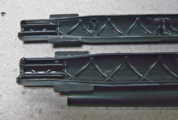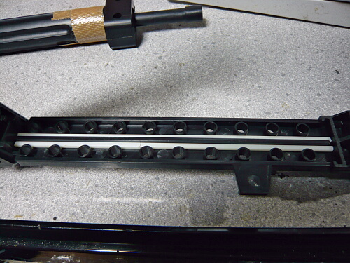 ついでに付属のグニャグニャしなるバイポッドも2mm角棒を収めて接着し強化を試みてみますが、あんまり、いやほとんど強化されませんでした。
