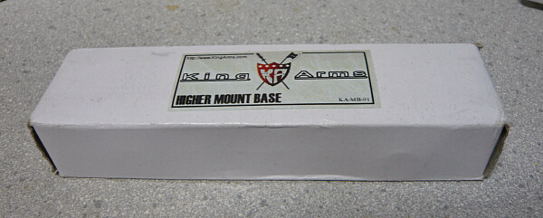 キングアームズのロゴマークと品名が書かれたシールの貼られた外箱。キングアームズは香港のトイガンメーカーですが銃の方は微妙な値付けでちょっと選択肢に入りにくいのですがパーツの方は安くて買いやすいものがチラホラある印象。