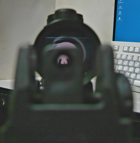 MBUS2を立ててドットサイトを覗き込んでみます。ドットサイトのドットの方が若干高い、という程度の位置になりました。