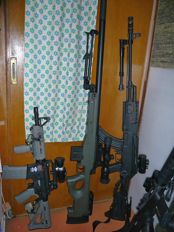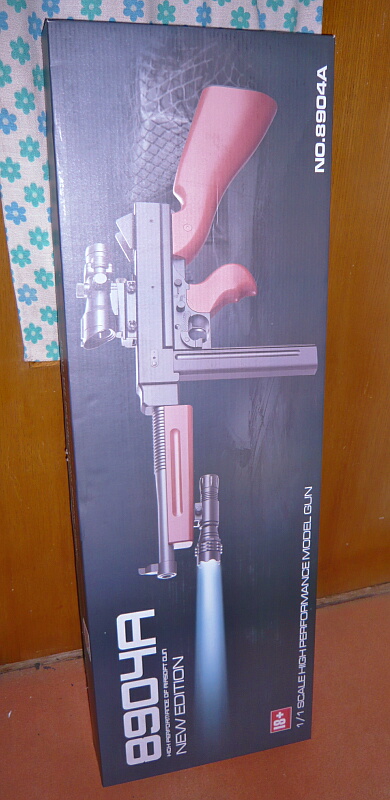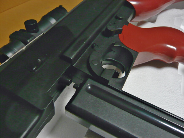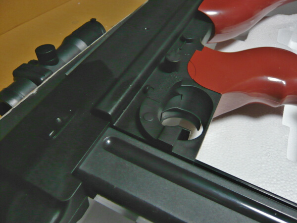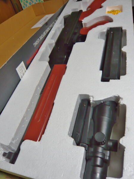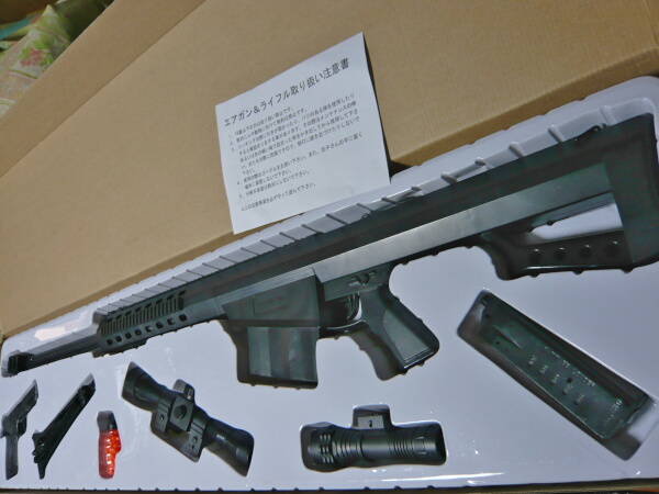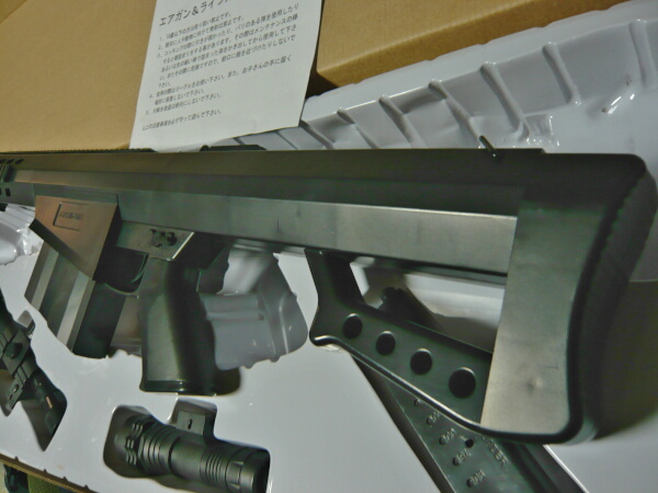 外箱がね・・・そっくりなんですよAS50と。ただ箱自体は1mオーバーなサイズだし、大きい事は分かった上で買ったのでガッカリはしません。実銃が145cmほどあるのに較べれば105cmと縮小はされていますが、それでもデカめの銃である事は否めません。