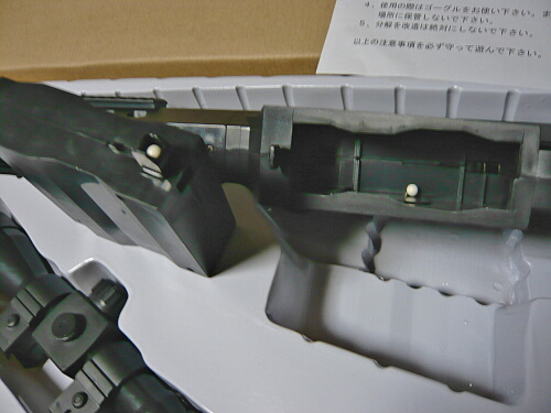 開封。こちらは発泡スチロールでの緩衝。全長813mmと実銃通りのフルサイズなので写真で見る印象より大きく感じます。