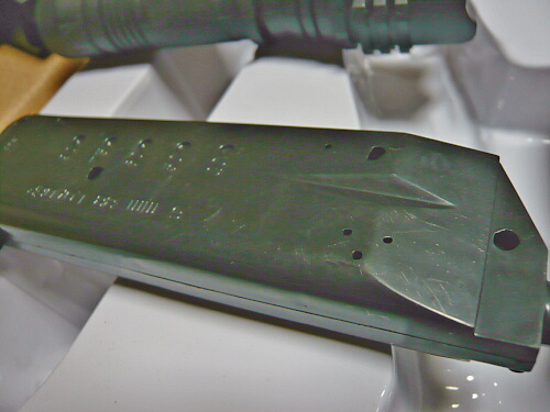 表面の風合いは特に変わった事はしていない成型によるつや消し。実銃バレットのレシーバーはプレス鉄板的な角のダルさと強いつや消しなのでペーパー掛けして角をならし、パーカーシールでも吹いたら良さそうな感じになる予感がします。