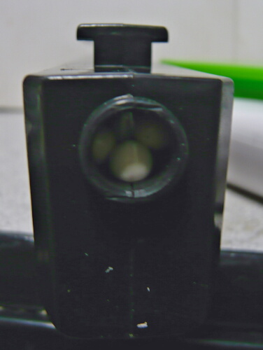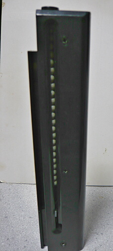 このマガジンはちょっと困った構造で、リップの1段奥が広がっていて更にその奥にストッパーがあるためBBローダーを突っ込んでもストッパーを解除できないのでそこから強引にギャリギャリ給弾する事になるのですが、1段目の広い部分に引っかかって弾が詰まります。この状態で銃に装着するとチャンバーを破壊してしまう危険があるので必ずこの部分の弾は振り落としてから銃に装着しなくてはなりません。素直にマガジン下面のフタを開けてジャラジャラと弾を流し込み、フォロワーを最下段まで下げてロックしてからマガジンを振ってルートに弾を転がり出すというリザーブ式の使い方をするのが妥当でしょうか。リザーブ式の場合弾タンク部分に錆鉄棒があったりして弾が汚れたりするのですが、幸いこの銃では大丈夫なようす。