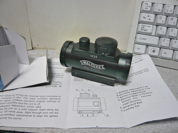 ドットサイトにはWALTHER Top Point 1x35の刻印があります。このドットサイト、1個目同様どうも何か特徴的な「匂い」が出ているのですよな・・・