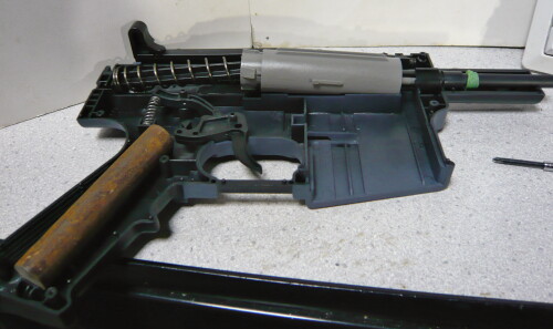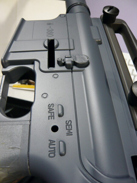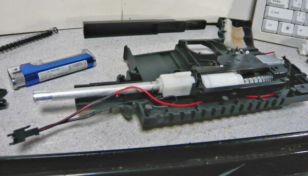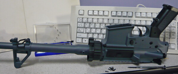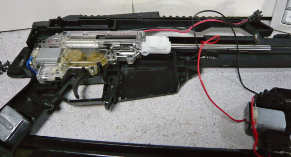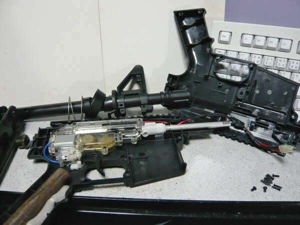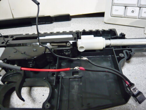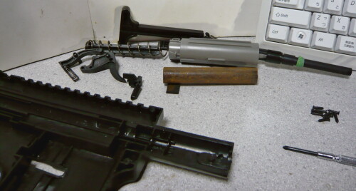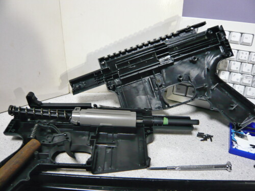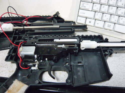 速やかに組み上げます。電池を入れて撃ってみると、トリガーの反応がすこぶる悪く、カチッと無反応だったりトリガーがロックされたり普通に撃てたりと酷い有様。でも弾はちゃんと飛ぶし、サイクルも大体元のまま。まあこちらは云わば余りパーツの組み合わせなのでどうでもいいのですが・・・