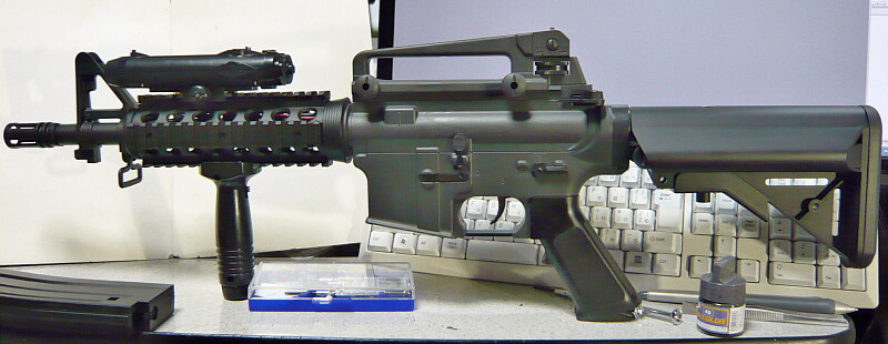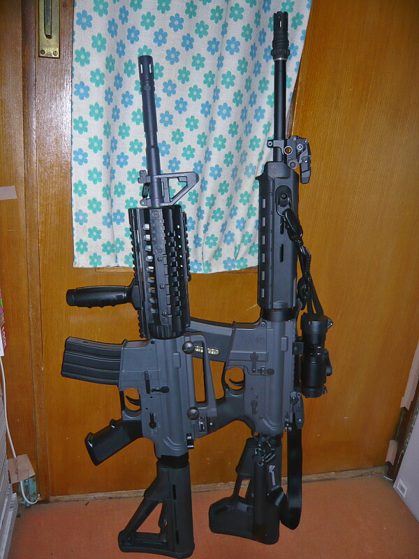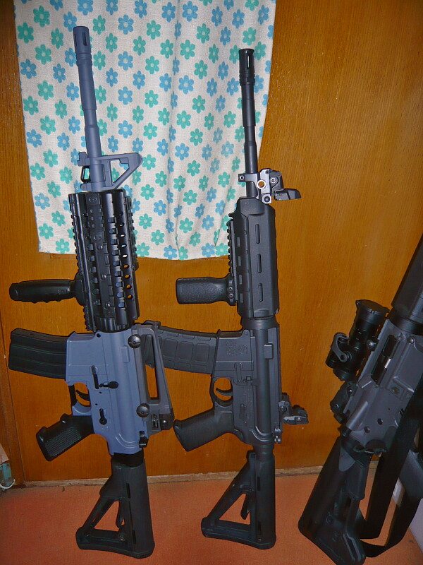 パーカーシールで塗装したトイスターM4A1と。並ぶとキッツイわぁ・・・一番右で見切れてるやつの色にしたいのに!