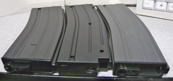 この銃のマガジン(中央)は形はBoysのM4系と形も機構も同じなのですがサイズがフルサイズ。しかも装弾数があまり多くありません。