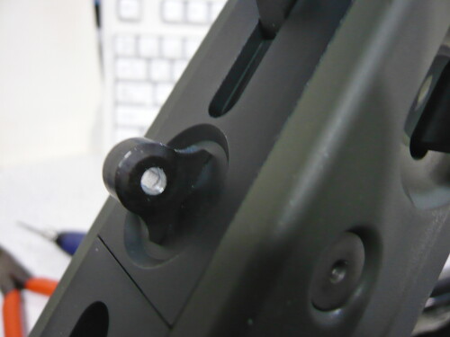 ピンが刺さるようになりました。バイポッドアダプターを装着後はここは囲まれてピンがすっぽ抜けるような事は無いのでユルユルでもOK。