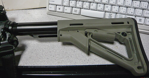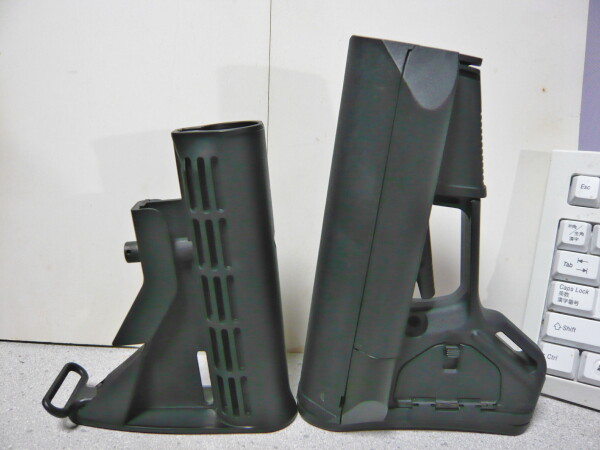 CTRカービンストックは元々マルイのM4へ取り付ける際に内側を紙やすりでかなり削り込んだにもかかわらずまだまだ渋いという難物。180番の紙やすりで更に削り込んでみたのですがまだ少し渋いとりつけになっています。苦労をしたくない人はMOEカービンストックにした方が良いでしょう。MOEカービンストックレプリカは何の苦労もなくポン付けできました。最近ではCTRカービンストックは各所でレプリカが2千円くらいで売られているので手に入れやすいですが、あちらもコレと同様難物なんでしょうか?1万円近くしたんだぜ、コレ。