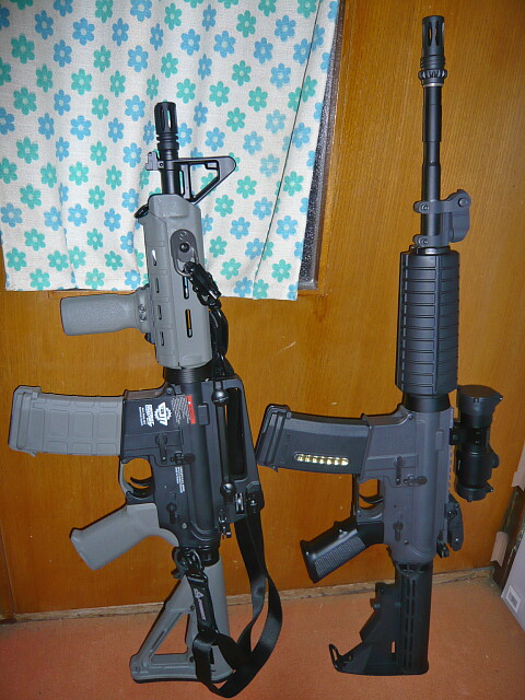 マルイのスタンダード電動M4に付けていたMagpulパーツを剥ぎ取ってG&GのCM16へ移植しました。
