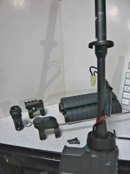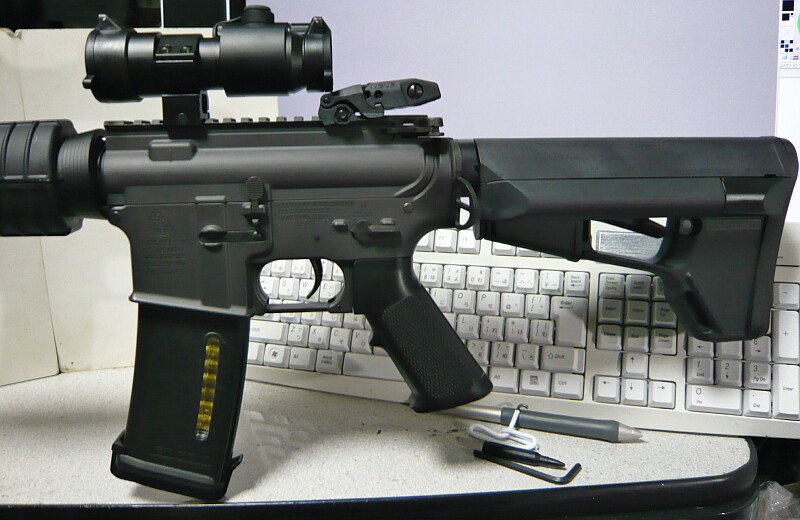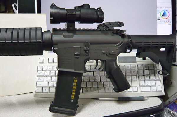 FGカラーのパーツを全オミットして再出発のウチのマルイスタンダード電動M4。まだまだほんの序の口。