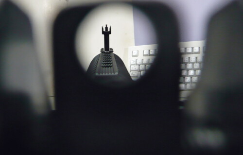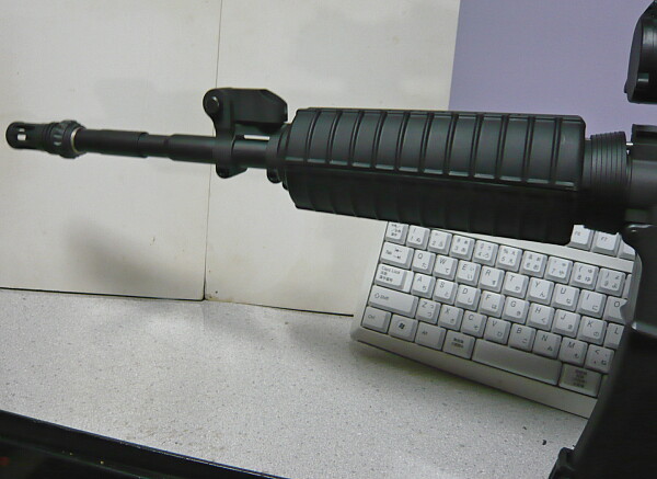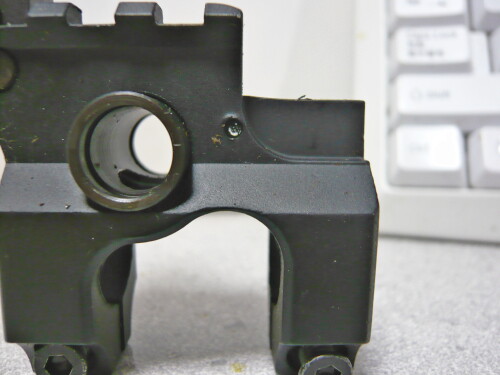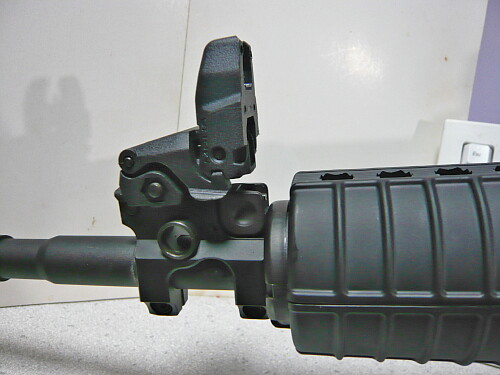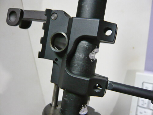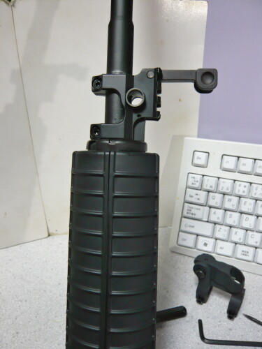 所定の位置まで入ったのでハンドガードを取り付け、リヤサイトから覗き込んで角度を調整。
