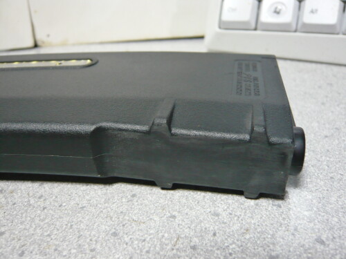 ただE-MAGは個体差からかマルイのレシーバーとは相性が悪いので少し削ってやりました。前面と後面の低い側の面をそれぞれ0.5mmくらい削っただろうか。シボが消える程度に削れば実用レベル。スムーズに抜き差ししたいならそれぞれ1mm近く削る必要があるかな?あくまで個体差なので現物合わせで。マグプルのP-MAGやE-MAGを買ってマルイ互換の銃なのに何故か刺さらない!という人は諦めずに削ってみましょう。ガワが樹脂製なので何とかなるハズです。(スチールマガジンが金属レシーバーに刺さらない!という場合は素直に諦めて下さい・・・)