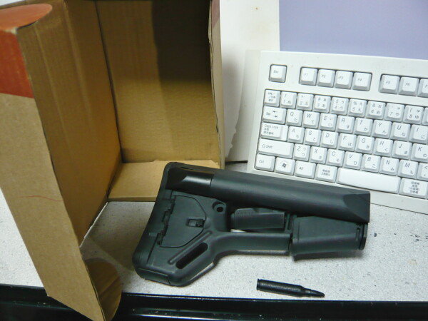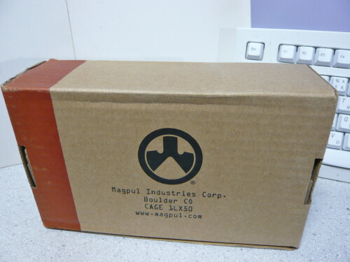 外箱からは何が入っているかわかりません。箱の大きさはMagpul PTSのCTRカービンストックの箱と比べると幅と奥行が同じくらいで高さが一回り大きい。