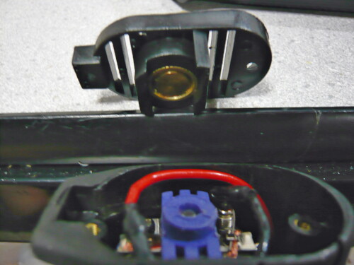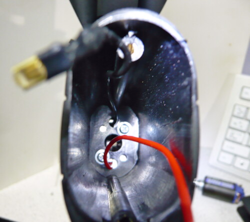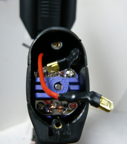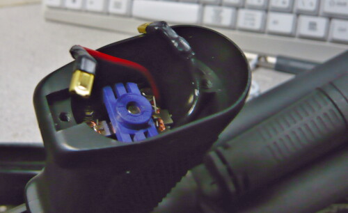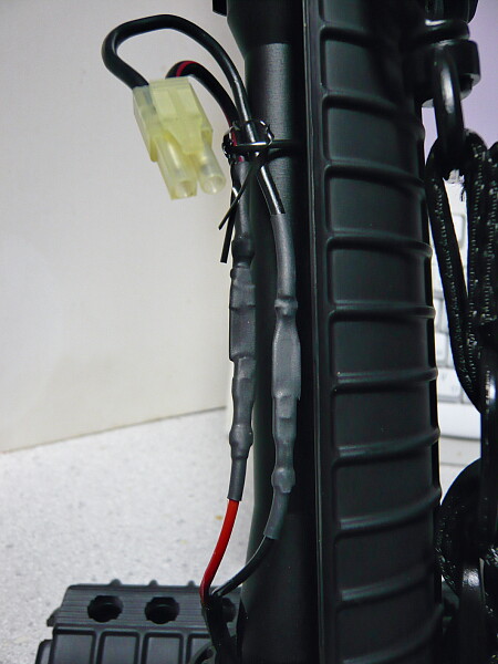 配線を端子に元通りに差し込みます。先に黒を差したほうが取り回しが良いですが、銃によって都合の良い取り回しが違う場合があるのでケースバイケースで。