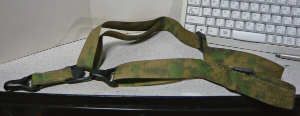 MS3(マルチミッションスリング3)はMS2に較べスリングの幅が広くなり、MS2だと片側がヒモを引っ張るとリリースされる金具でしたがこちらは両端がクリップになっています。色は単色や迷彩柄など色々ありますが今回買ったものは「A-TACS FG」というフォリッジグリーン系の迷彩柄。