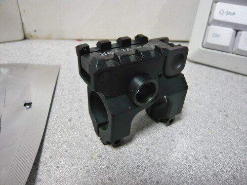 M4用のフロントサイトポストで、サイトを畳むと上面がレシーバーのレイルと同じ高さになるレイルになるタイプ。以前にも似たような値段で買ってトイスターのM4に取り付けましたがアレとはまた別のメーカーのものです。