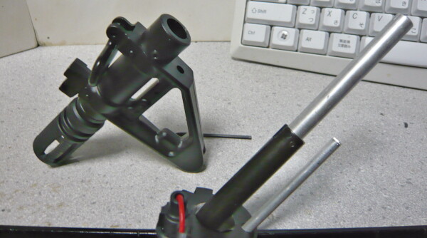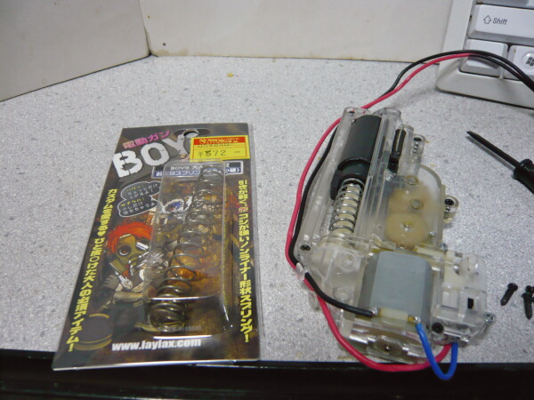 ピッチの細かい方をスプリングガイドに挿し、メカボックスへ組み込みます。あまりスプリングが強まった印象は無く、何の苦労も無いですが頑張った感も無いのが寂しいところ。