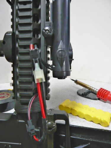 何で元のコネクターを残したかというと、RISハンドガードの穴を通すため。ミニコネクターは僅かに太くて通らないのです。ちょっと配線が長々とはみ出てだらしないですが、アッパー側には配線を収める余地があるので大丈夫。ところでこのヘンテコなコネクター、JST SMR/SMPタイプと呼ばれるものでパチンコ台とかに使われてる端子らしい・・・