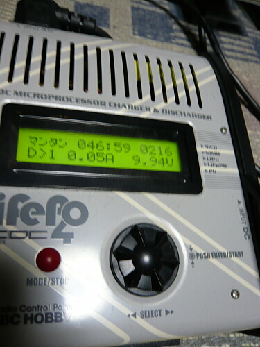 コネクターがミニ端子になったのでいつもの充電器が使えるようになりました。モニターしながら充電できるこの安心さよ。ただしNi-Cdで300mAしかないので0.3A放充電。ゆっくりしています。