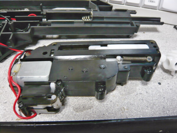 BOYsG36Cのメカボックス。黒い半透明のメカボックスですが、やはりBOYIのM4CQBに入っていたメカボックスのコピー元である事がわかります。ほぼ同じ。