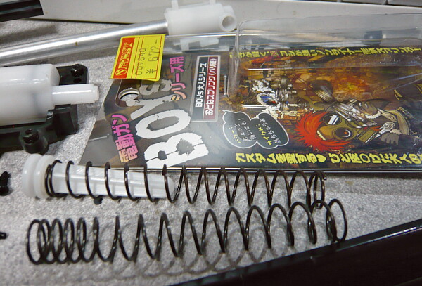 速攻で元のスプリングに戻してしまいました。BOYSの標準スプリングはこれより柔らかく、それでも初速は32mps程度は出るので給排気に大きな差があるようですね。