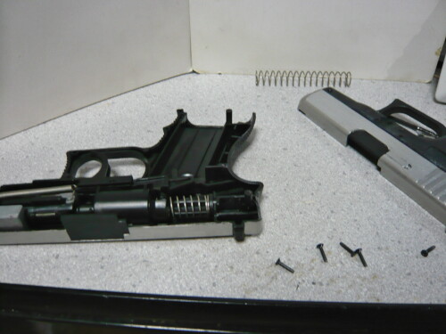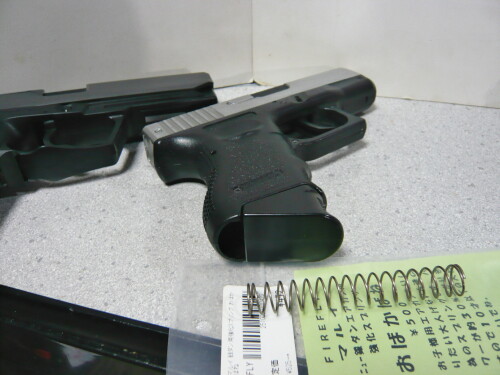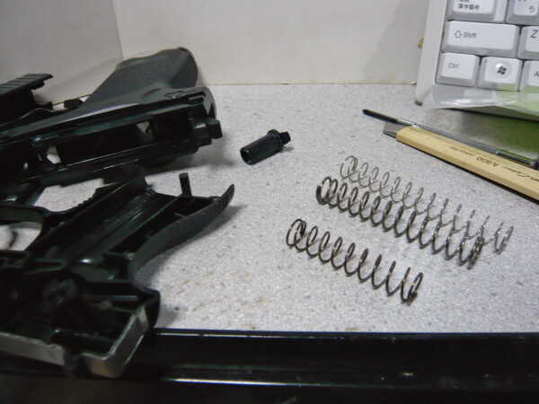 USPに銀ダンG26のノーマルスプリングを入れてみました。コッキングがめっちゃ軽くてこれはとても良い・・・初速は大分下がりますが銀ダンよりは出ています。ちょっと気に入っちゃった・・・これはこのままにしておきます。