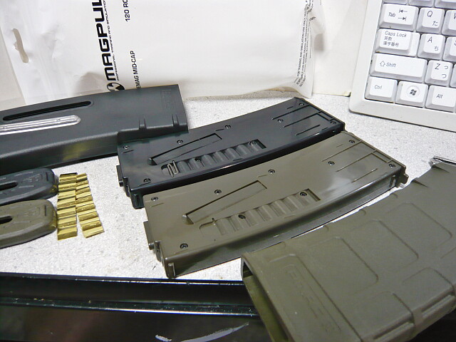 P-MAG3色とE-MAG。E-MAG DWには今のところBKしか無いようです。DEカラーの銃やパーツは持ってませんが、1挺くらいあってもいいかな・・・お金が・・・