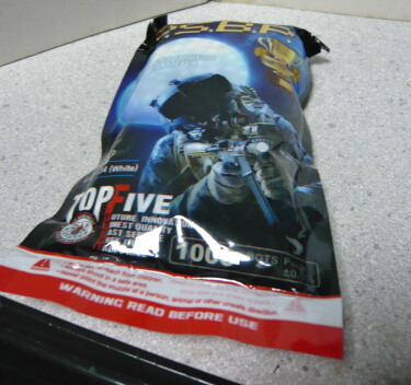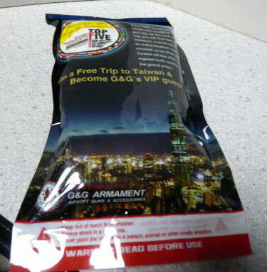 付属の0.20gBB弾。噂によるとG&GのBB弾は最近の台湾製になったマルイのBB弾と同じ工場で作られているという話も聞きます。ウチではそのマルイの0.2gベアリング研磨(台湾製)に統一しているのでこれはひょっとするとまったく同じものかもしれません。そのクオリティのBB弾が完全密封された袋に1000発入りという気前の良さ。