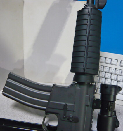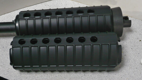 ハンドガードは上写真の上側のマルイスタンダード電動M4のものより少し長く、リアルサイズ。