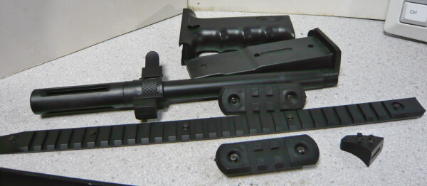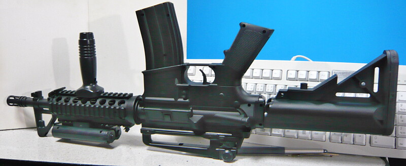 まずは工具なしで外れるものを外します。マガジン、ストック、ハンドガード、チャージハンドル、そしてねじ込まれているだけのハイダー。