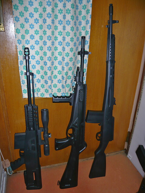 並べるならこんなところ。コッキングレバーの操作でシリンダーごと後退させてピストンをコック位置で止め、シリンダーを前進させて装弾、という構造は上写真左のAS50ほどトンチキではありませんが同様に稀にレシーバー内に装弾し損なったBB弾が転がり込む症状がみられました。パワーを求めて強いバネを入れて右のM1943Cみたく破壊するのもなぁ・・・