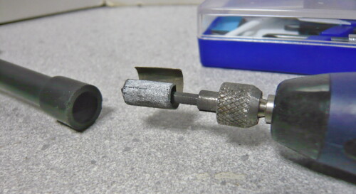 芯は出たけど波打ってて真っ直ぐになっていないような・・・しかしこれ以上を求めると電動ガン用のインナーバレル(4千円~6千円コース)という事になるので酔狂の領域。俺に出来るのはこれがせいぜい。マルイのホップ無し長物に使われてたようなアルミのインナーバレルが安く売ってたらいいのに・・・