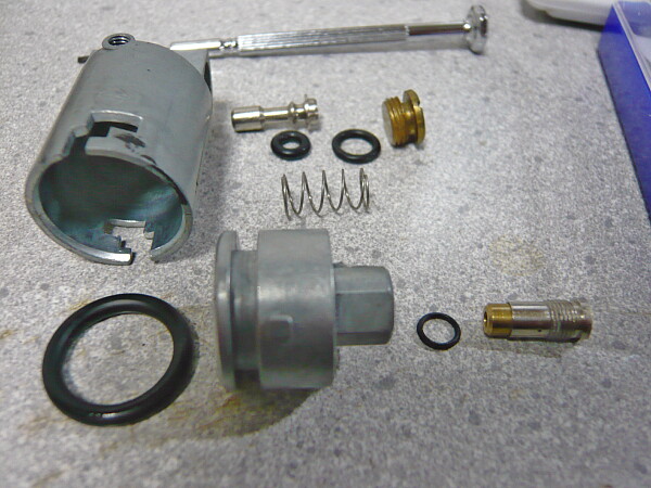 全体にシリコンオイルを吹き、パッキンもモミモミして組み直します。ガスを入れてみると漏れひとつ無く、ここは完全に復活できました。