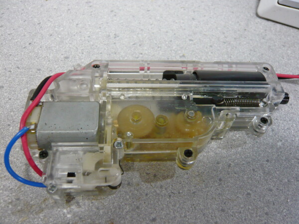 メカボックスを閉じる時はギヤを貫通するピンの合わせがちょっと手こずる事の他、トリガースイッチのスプリングを定位置にしたらトリガースイッチを閉めるまで押さえ続ける必要があります。