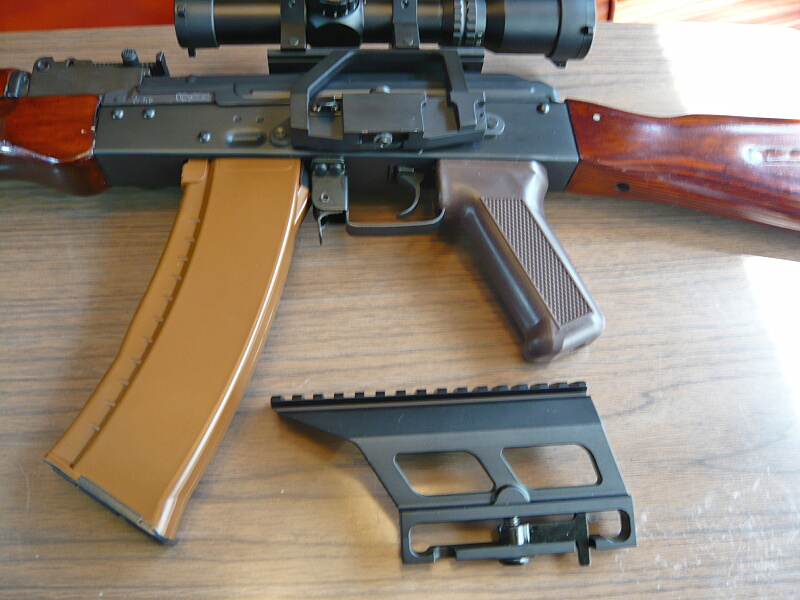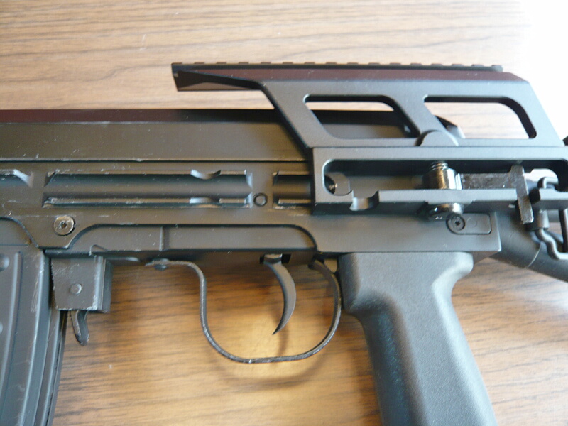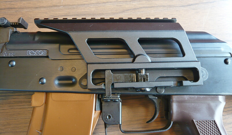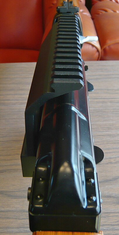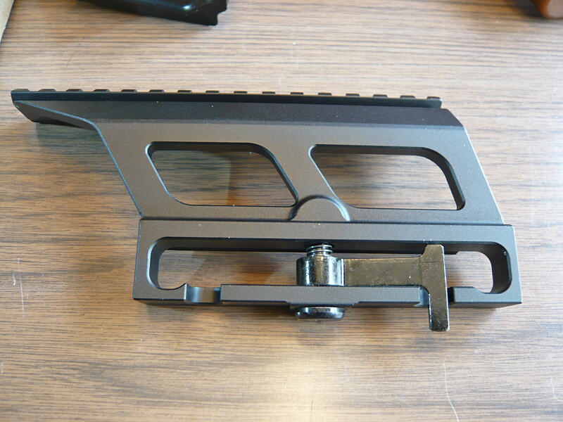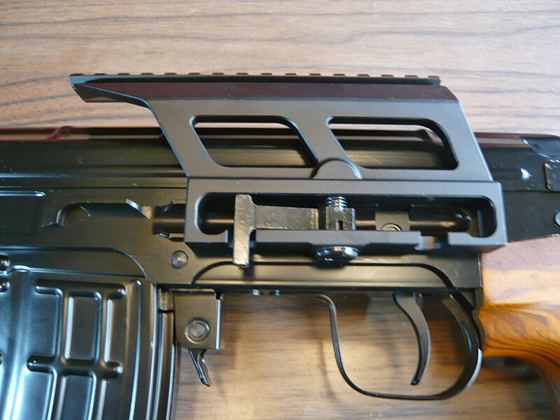 レイルは銃の真上丁度真ん中くらい。AKにも対応しているので他のサイドマウントと同様にトップカバーとレイルの間に空間が開きます。