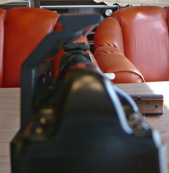WEのドラグノフ(ACE-VD)はガスブローバックでリコイルが強烈なのが特徴。しかしドラグノフの格好良さの一端を担うスコープ・PSO-1は格好は良いものの性能的にはあまり高いものではなく、特に視界が狭いために強烈なリコイルでブレてしまい視界から飛んでゆくBB弾を見失うのであまり実用にならず、もっぱらこの銃を撃つ時はスコープは外してアイアンサイトで撃っていました。折角スコープの超似合うスナイパーライフル(厳密には違いますが…)なのにスコープで射的を楽しめないのは悲しい。