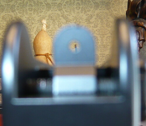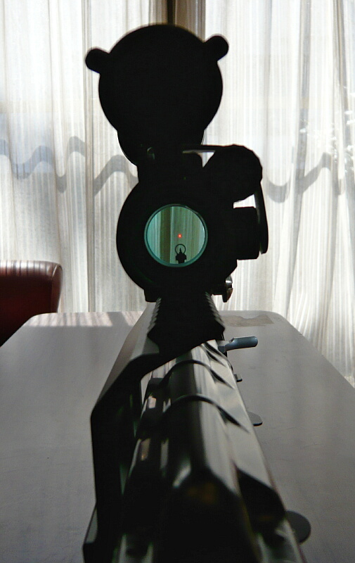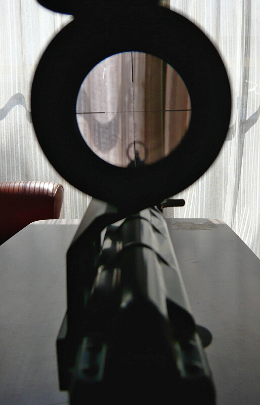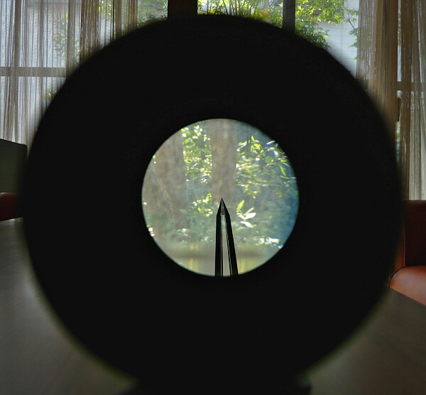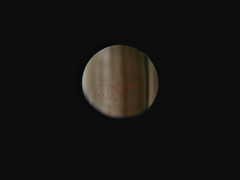ちなみにPSO-1の視界。アイピースで周囲は真っ暗、正直アイレリーフより若干アイピースの方が長い印象があり、アイピースに目を押し付けてやっとレティクルにピントが合う感じ。
