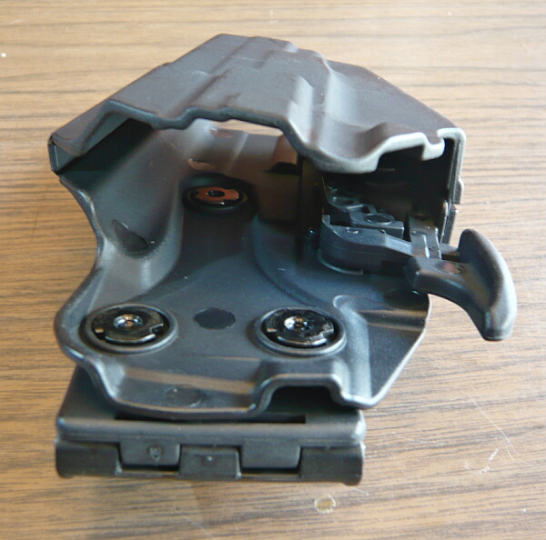 サイドマウントレールが丸く欠けているところとレバーの軸部分を合わせ、レバーを起こして前側へ倒して取り付け完了。やったーポン付けだ!(レバーを前側に倒すのが固く、再び起こす時にかなり固くなってしまうのだけが難点でしょうか?)