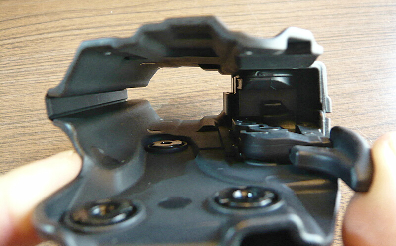 ベルトループはプラの弾性でロックされており、ちょっと固いですが解除すると上ヒンジでひらきます。