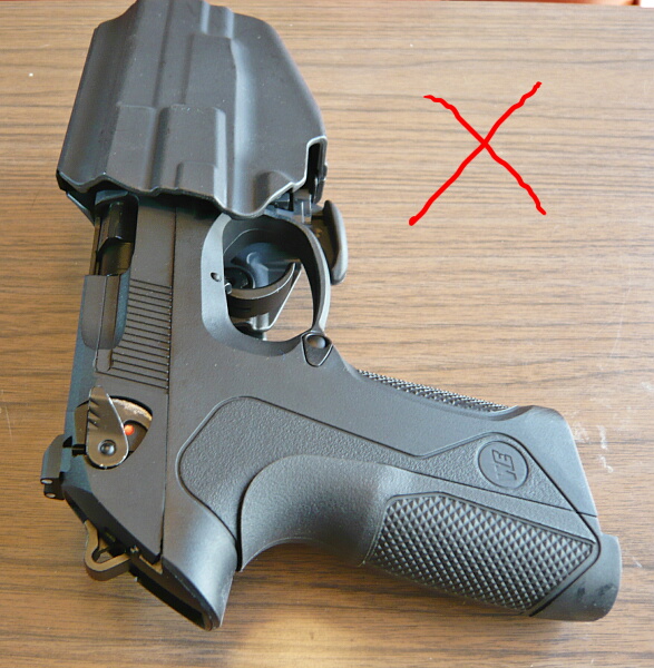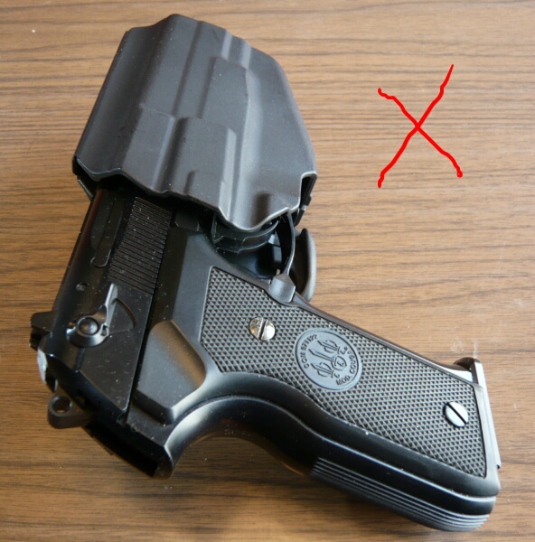 早速持っている銃を差して対応を確かめましょう。まずは買ったばかりなPx4ですが、初っ端から入らない…入らない銃は大抵トリガーガードの上下が大きくて収まらないパターンが多いです。これもそう。
