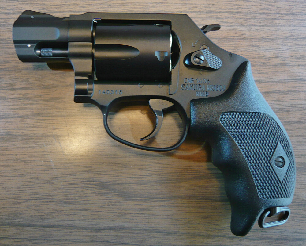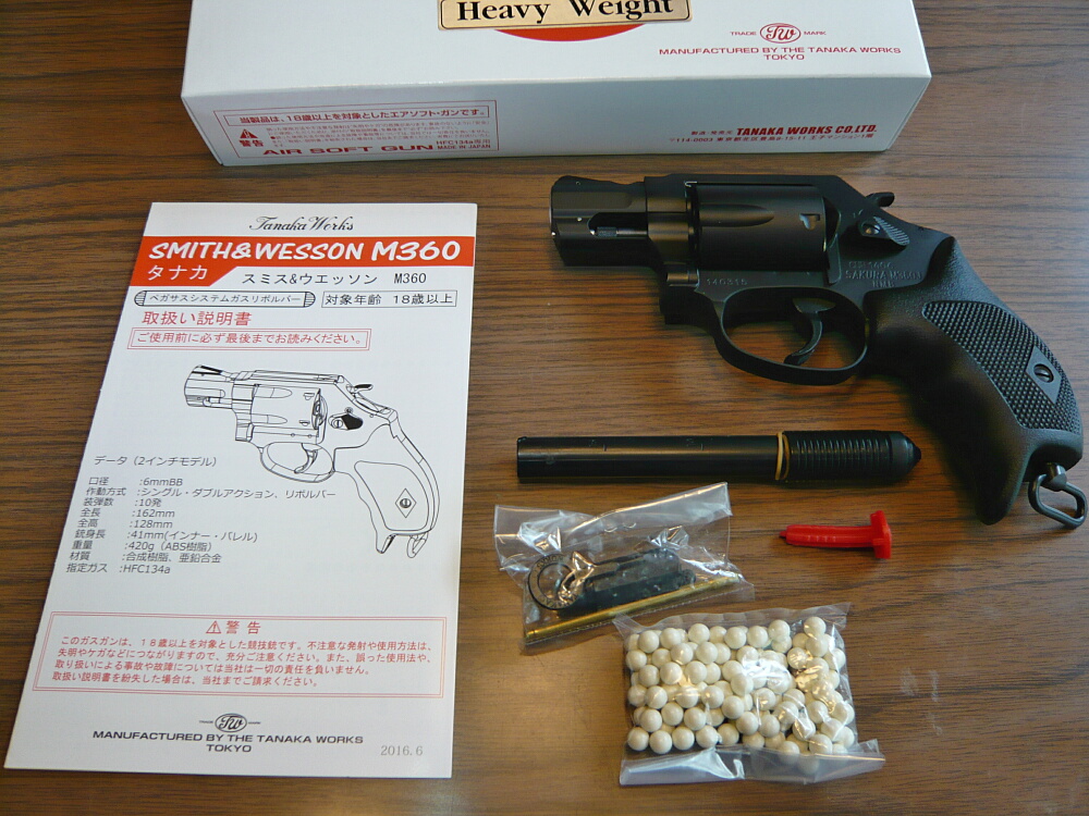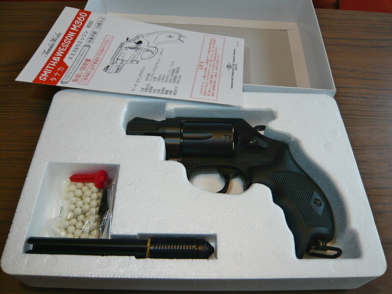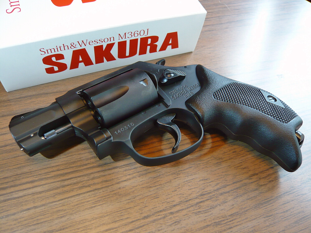 リボルバーがマイブームだった時に大きいの中くらいのと色々買ってここでレビューしてきました。そして小さいの、としては以前からマルシンのポリスリボルバー(実質的にニューナンブM60)をもっているのですがこれは8mmBB弾を使う仕様。入手性が怪しくなってきた8mm弾をポンポン外撃ちして消費するのも心苦しいので6mm仕様も欲しくなってきます。しかし単純にマルシンの6mm仕様ポリスリボルバーを買うのも何かなぁ…という事で他のを見繕うのですが、選択肢としてはマルシンとタナカのS&W Jフレーム系となります。しかしM36など色々あるもののどれもグリップが短くて小指が遊ぶタイプのものばかり。握りにくい銃は好きくありません。でもポリスリボルバーめっちゃ握りやすいですやん…そう、日本のポリス拳銃はグリップ前面が下に延長されていて小指が遊ばないようになっています。マルシンポリスリボルバー以外でこの延長されたグリップを装備しているものとなるとタナカのM360J SAKURA一択になります。